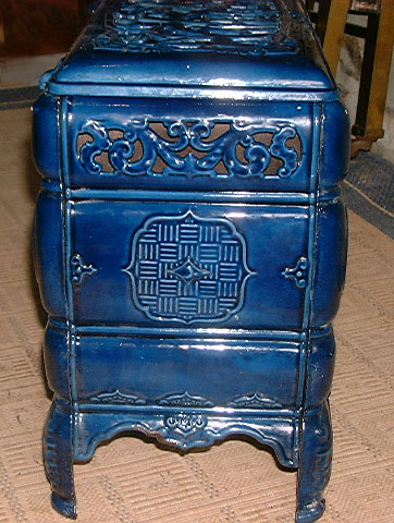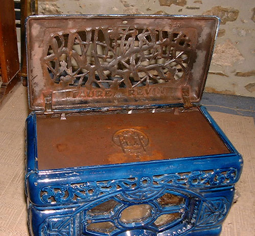 Very decorative old French blue enamel stove. It is in very good condition with no sign of cracks.