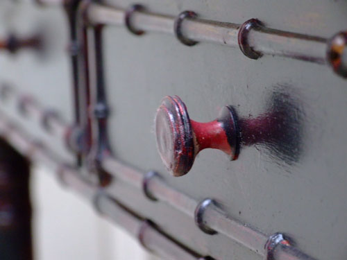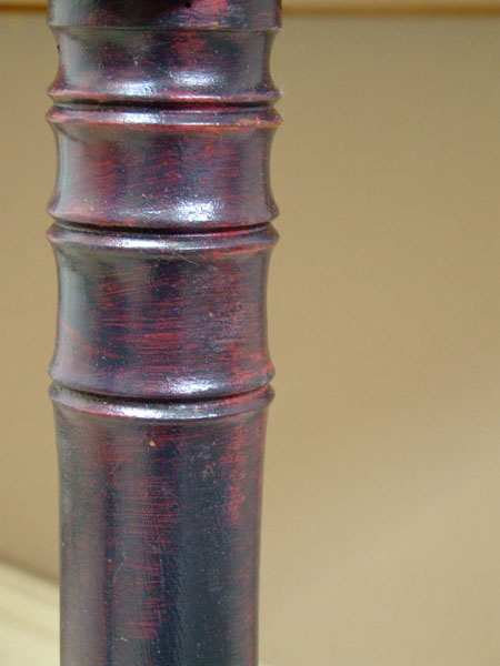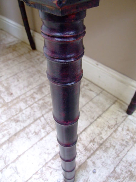 Painted in black and dark red with a lightly distressed and wax finish.