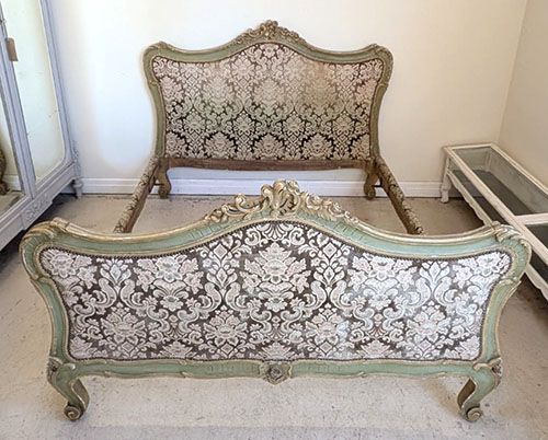 FRENCH ANTIQUE LOUIS XV UPHOLSTERED CUSTOM KINGSIZE BED