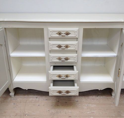 wonderful large 4 door vintage French wooden sideboard has been painted in Farrow and Ball