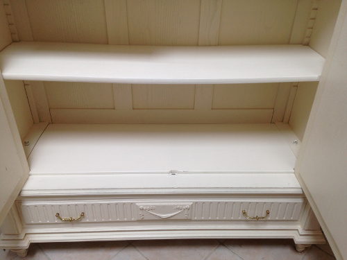 The interior is currently configured with adjustable shelves and a drawer and can be fitted with