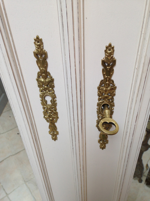 STUNNING FRENCH ANTIQUE HENRI II CRESTED PAINTED ARMOIRE